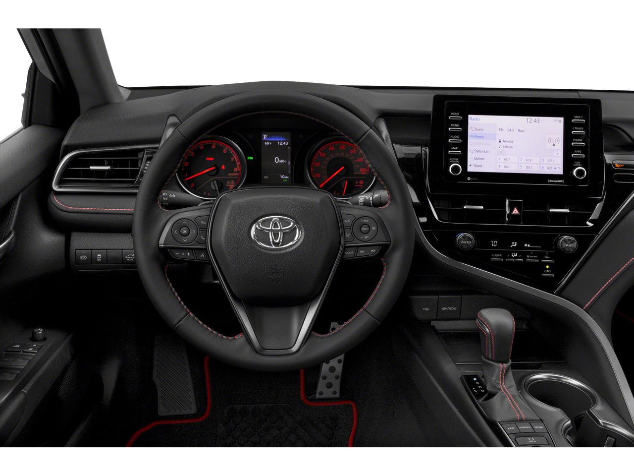 • Fabric Seat Trim w/Sport SofTex -inc: TRD red stitching and TRD logo on headrest